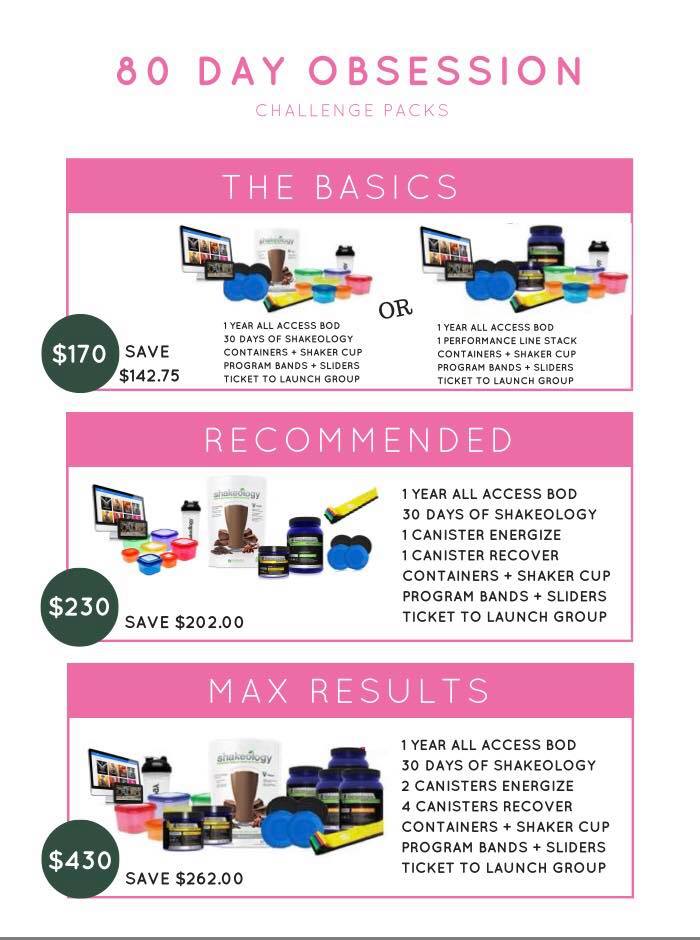 The difference will be if you want Shakeology PLUS the performance line and if you do… how many tubs of energize/recovery do you want! I personally will be using Shakeology and the performance line every throughout the entire program!